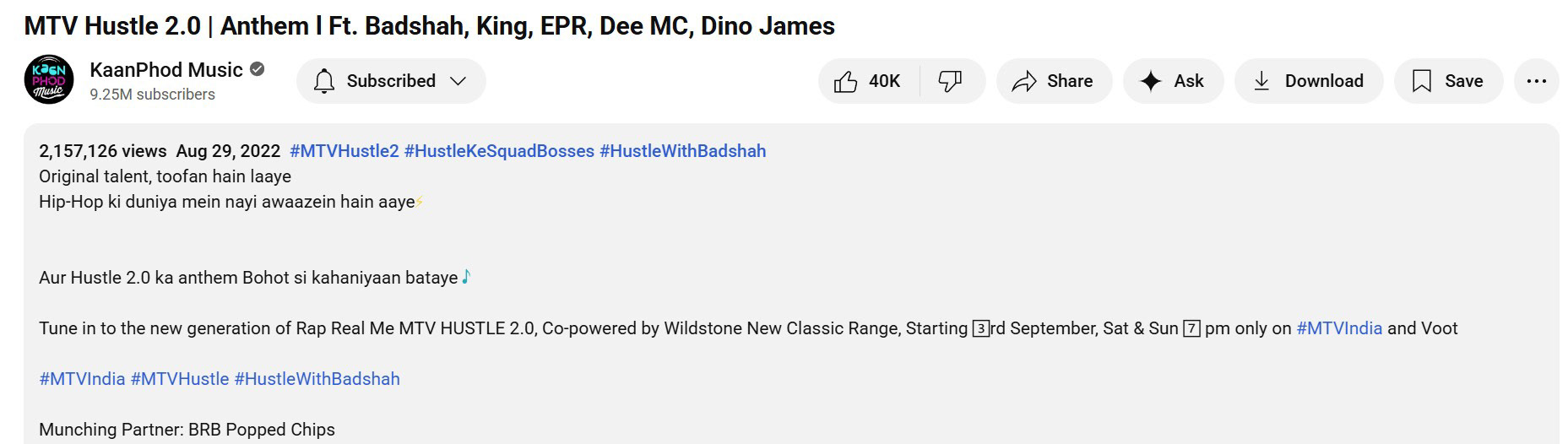The high-energy music video resonated strongly with India’s hip-hop and emerging rap community, amassing over 2 million views within just two weeks of its launch.